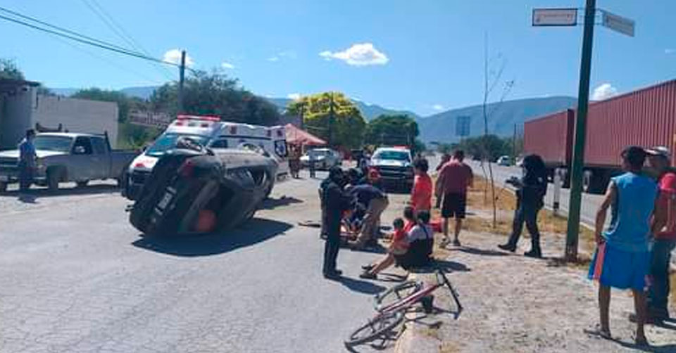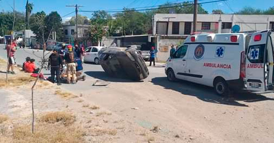 Jaumave, Tamaulipas. - Un choque con volcadura registrado esta tarde en la entrada al municipio de Jaumave dejó como saldo una mujer de 22 años lesionada y cuatro menores con golpes leves.