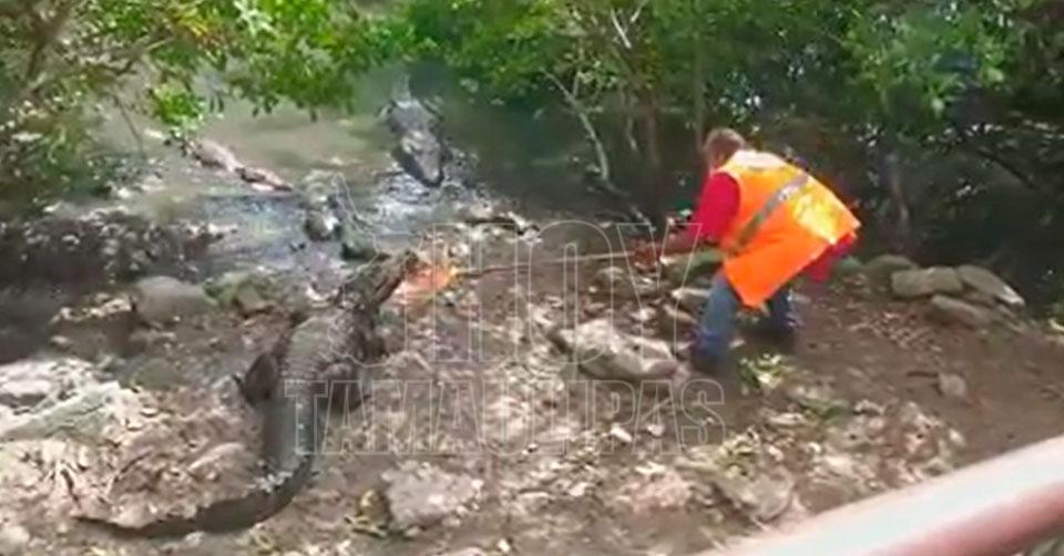 Pide Servicios Públicos de Tampico al personal no “torear” los cocodrilos