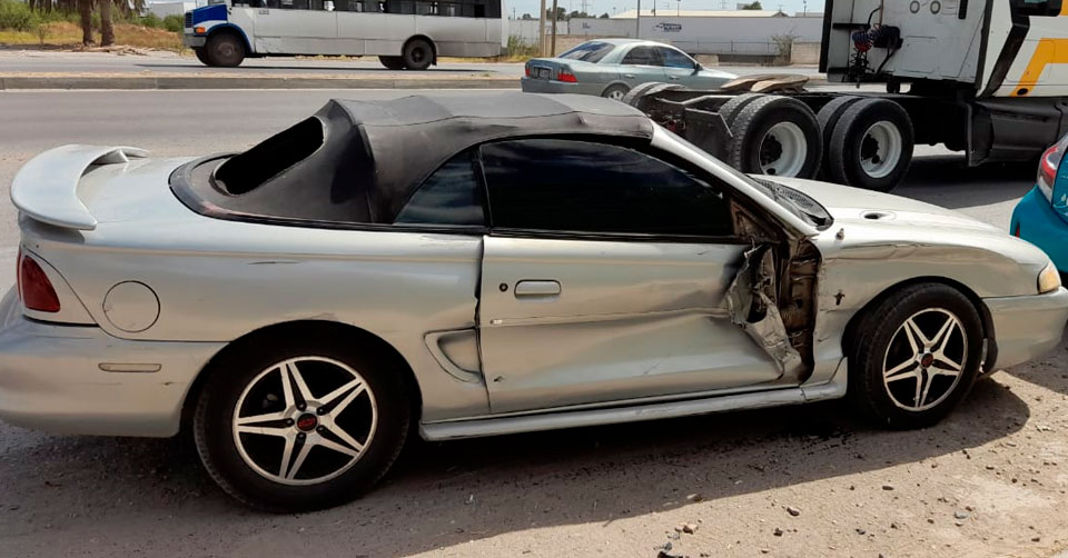 Al hacerlo sin precaución, de poniente a oriente, el chofer de la pesada unidad, Fernando, de 34 años, chocó en el costado derecho al Ford Mustang.