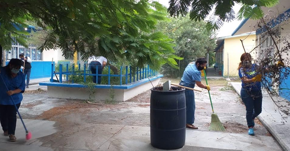 "Hay que podar los árboles, cortar el zacate, limpiar las jardineras, barrer los pasillos, fumigar y sanitizar las oficinas administrativas, ayudar a los maestros para que sus escuelas estén limpias y con esto también combatir la presencia del zancudo y el Coronavirus", dijo.
