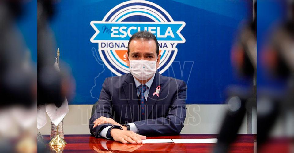 Nuevo Laredo, Tamaulipas. - En la reunión virtual del programa ‘Mi Escuela Digna, Moderna y Saludable’, que llegó a los 200 espacios educativos beneficiados en su segunda vuelta, el secretario de Educación en el Estado, Mario Gómez Monroy reconoció el trabajo realizado por el presidente municipal Enrique Rivas Cuéllar en la educación y destacó que en ningún municipio de Tamaulipas han recibido este apoyo como en Nuevo Laredo.
