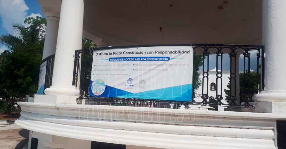 Vandalizan mantas del gobierno de Altamira colocadas en la plaza principal