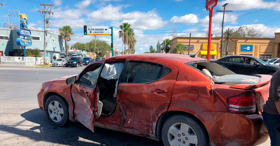 Matamoros, Tamaulipas. - Una mujer que iba acompañada de su hija menor de edad y de su suegra, causó un fuerte choque en Matamoros en el que lesionó a sus acompañantes.