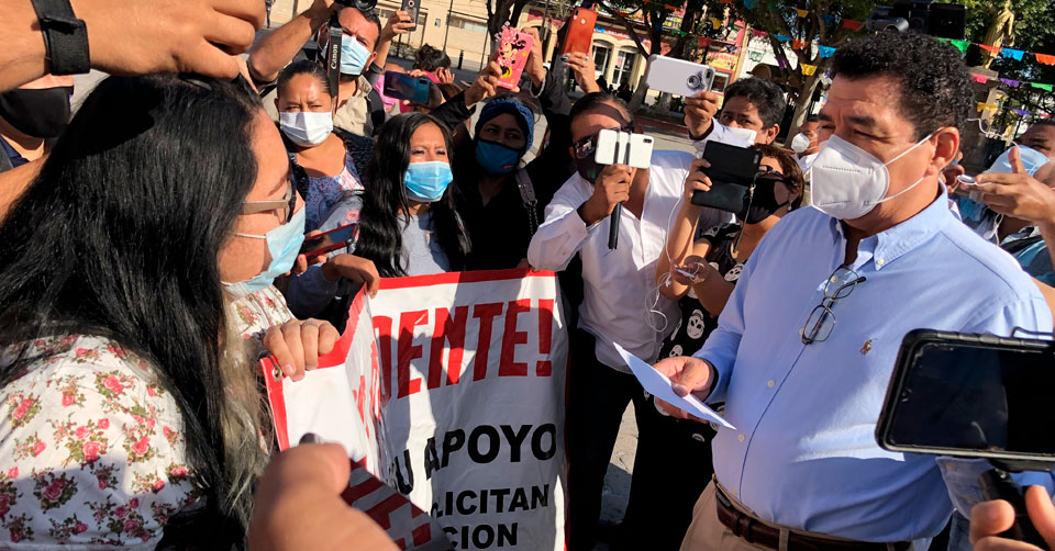 Matamoros, Tamaulipas. - Madres de familia de la escuela de nueva creación del Fraccionamiento Palmares en Matamoros, se manifestaron este día en la plaza principal para pedir a las autoridades municipales la donación de predios y que se agilice la creación de una nueva Secundaria en este sector, siendo atendidos por el alcalde Mario López, quien se comprometió a construirles un aula a partir del próximo año para el beneficio de los hijos de estas personas.