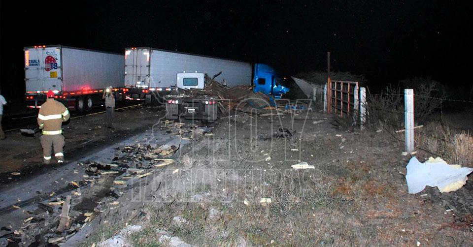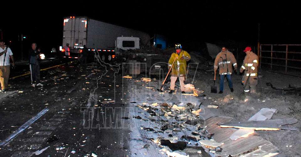 Ciudad Victoria, Tamaulipas. - Un choque múltiple entre tres tractos camiones dejó como saldo al menos dos choferes lesionados y cuantiosos daños materiales.