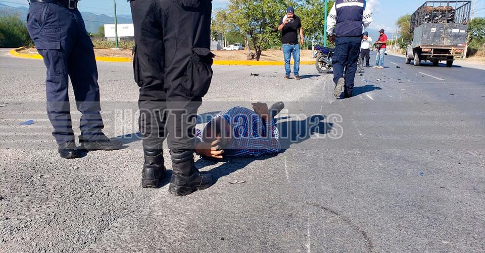 Choque entre motos deja un lesionado en libramiento de Ciudad Victoria
