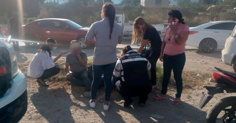 Ciudad Victoria, Tamaulipas. - Un hombre resultó gravemente lesionado esta tarde luego de ser atropellado por una motocicleta en la que viajaban dos obreros de la maquiladora Aptiv, esto en el Eje Vial y calle Michoacán en Ciudad Victoria.