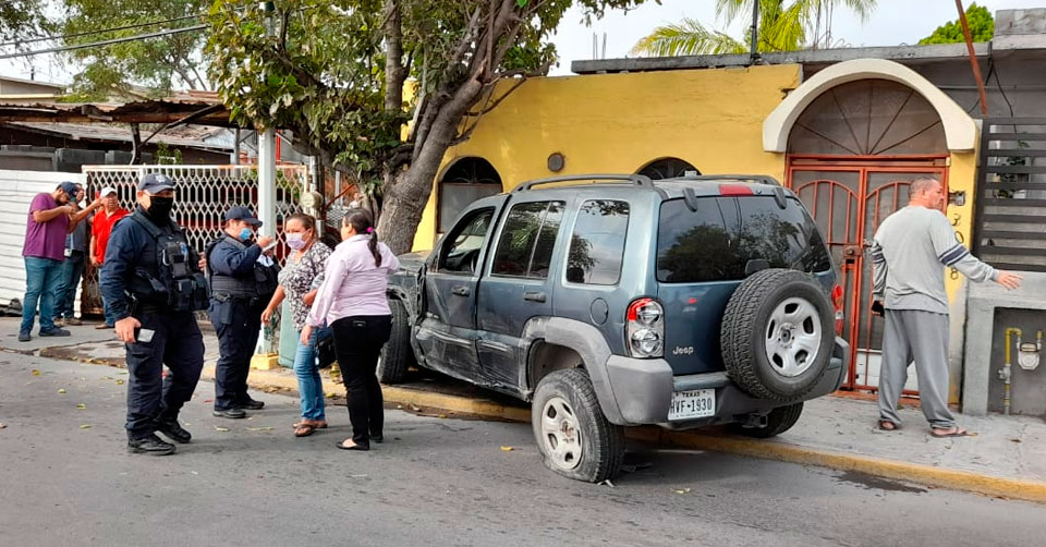 Nuevo Laredo, Tamaulipas. ─ Dos personas lesionadas y cuantiosos daños materiales, tanto en vehículos, una casa y hasta un árbol, fue el saldo que dejó un aparatoso accidente provocado por una mujer que no respetó el semáforo en rojo en calles de la colonia Guerrero en Nuevo Laredo.