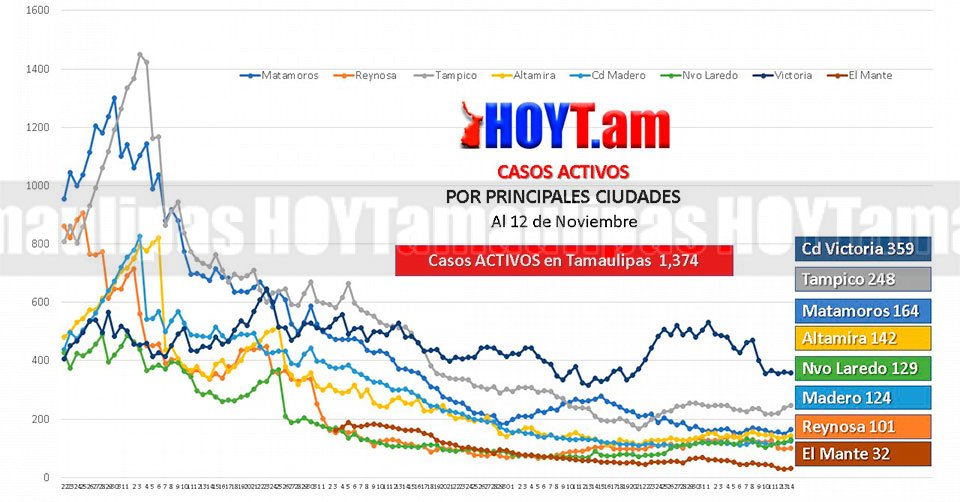 En contra parte, en los recuperados, Ciudad Victoria ocupó el primer lugar con 273 casos, Tampico con 111, Nuevo Laredo con 78 y Matamoros con 77.