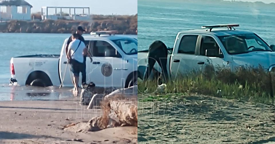 Se les atasca camioneta a policías investigadores en la playa La Pesca