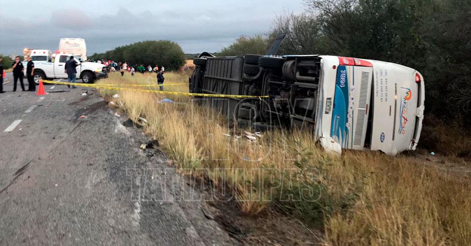 Vuelca autobús de FRENA; dos muertos y 21 lesionados. Iban a Matamoros