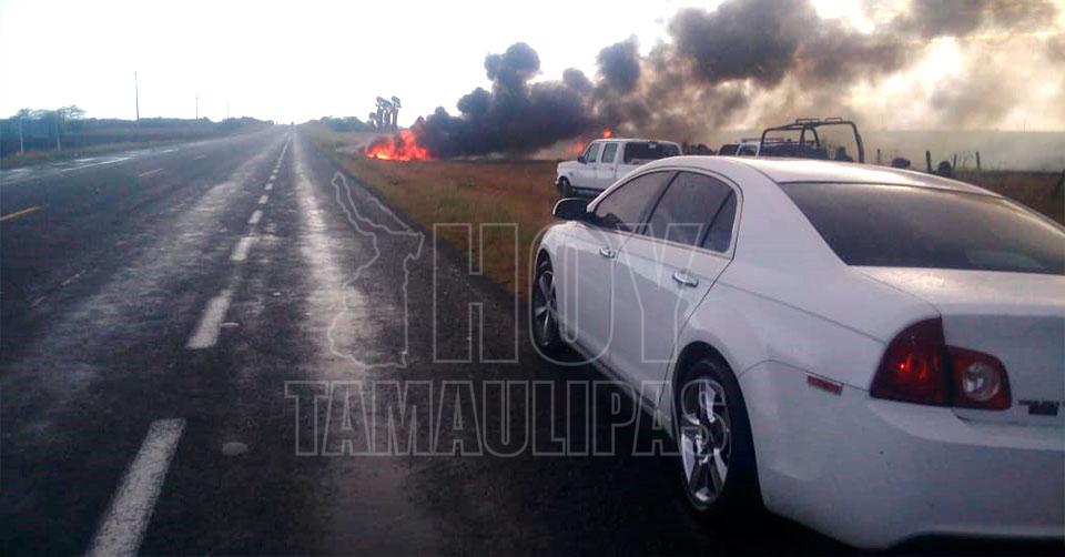 Reynosa, Tamaulipas. - Una madre y su menor hijo fueron salvados milagrosamente por policías estatales de auxilio carretero, luego de rescatarlos del auto en llamas en que viajaban y que volcó.