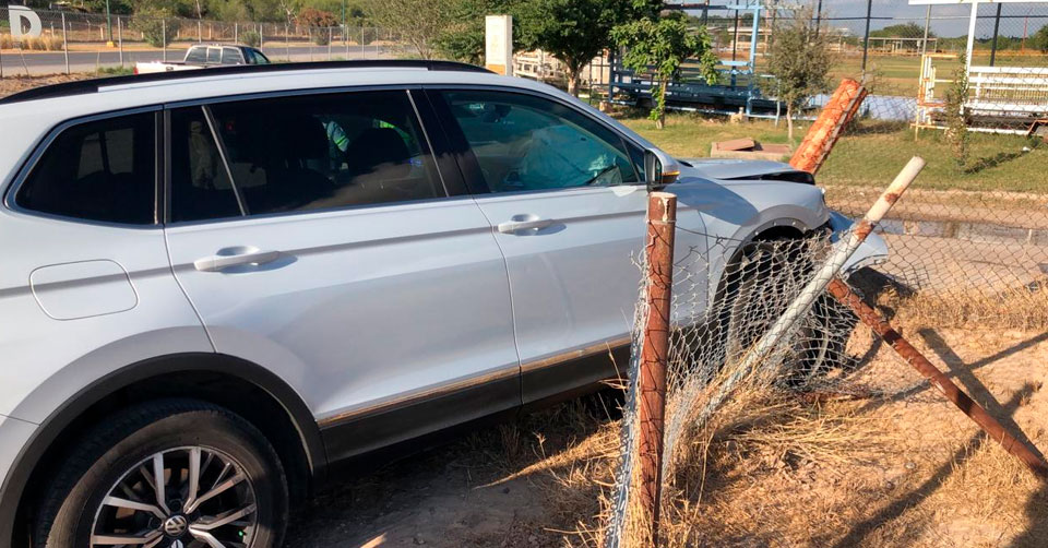 Al salirse del camino, la mujer avanzó hacia los campos de béisbol “Riberas del Bravo” y chocó un poste de madera que derribó y también dañó la malla ciclónica que delimita el área.