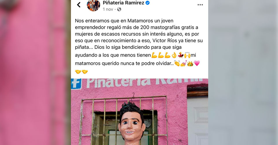 La Piñatería Ramírez realizó la piñata del ahora priísta de Matamoros, Víctor Ríos y afirmaron que se la habían realizado por su labor altruista, siendo desmentido por una trabajadora de dicho negocio