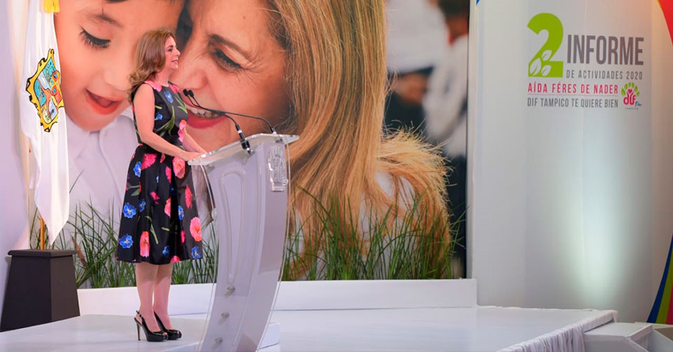 Al rendir su segundo informe de labores, la presidenta del Sistema DIF Tampico, Aída Féres de Nader sostuvo que la esencia del organismo ha sido siempre estar cerca de la gente y pese a que 2020 trajo consigo retos sin precedentes, las acciones y programas emprendidos brindaron protección, seguridad y certidumbre a los grupos más necesitados de la sociedad.