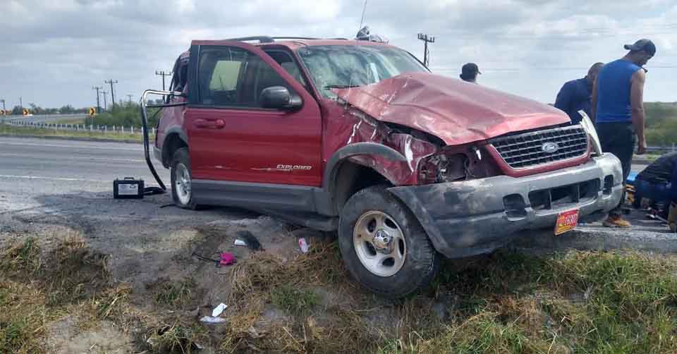 Matamoros, Tamaulipas. - Un total de cinco lesionados, dos de ellos de gravedad, dejó una volcadura que se registró la tarde de este miércoles en la carretera Reynosa-Matamoros, siendo una familia de China, Nuevo León los accidentados.