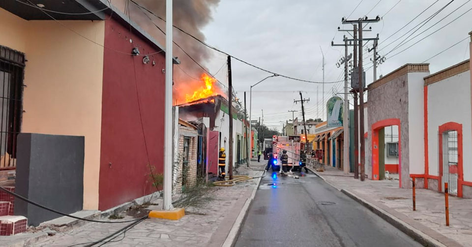 Nuevo Laredo, Tamaulipas. ─ Un incendio arrasó con una casa abandonada y dañó la estructura de un local en donde funcionaba un viejo bar, en hechos registrados en el centro histórico de Nuevo Laredo.