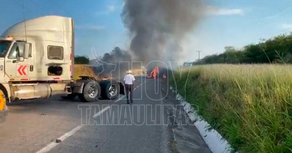 Dos muertos deja choque con incendio en la carretera Victoria-Monterrey