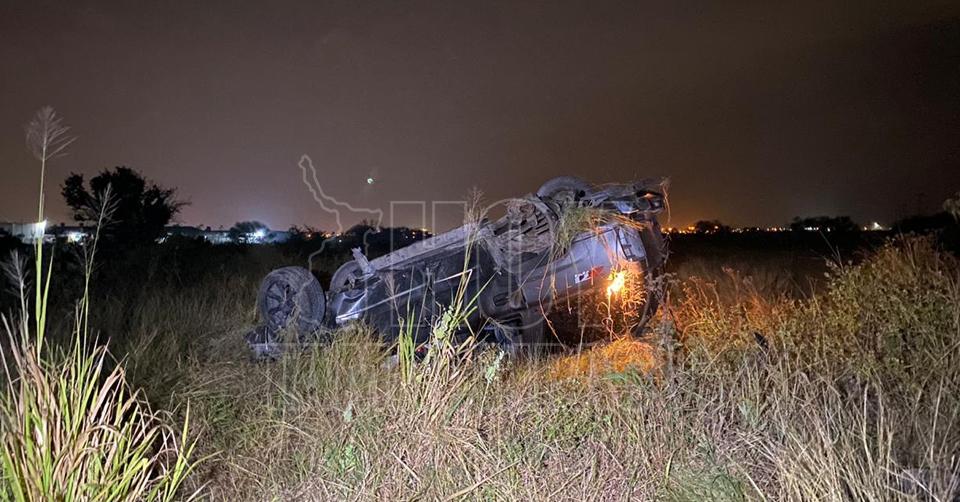 Fue aproximadamente a las 3:30 horas de la madrugada de hoy cuando a 30 metros de la superficie de rodamiento vehicular, a un costado de la Carretera Victoria-Monterrey, quedó con las cuatro llantas hacia arriba una camioneta marca Chevrolet Tahoe con placas de Texas.