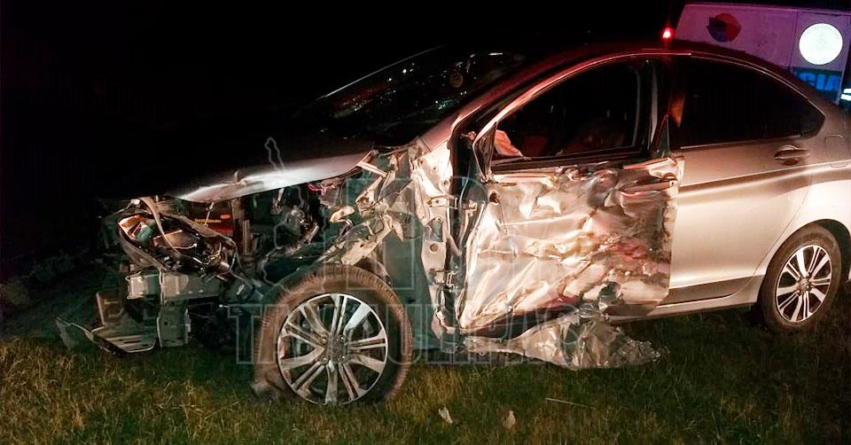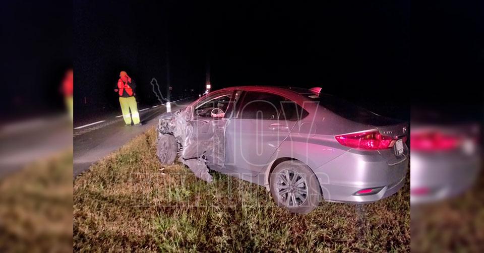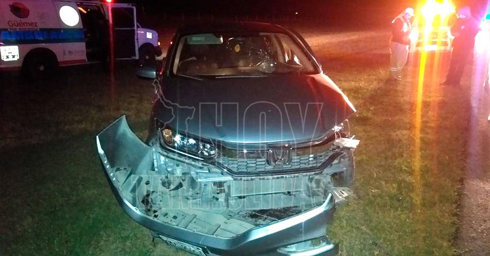 Güemez, Tamaulipas. - Un conductor se salvó de morir esta noche luego de que un tráiler impactó el vehículo que conducía y lo sacó de la carretera.