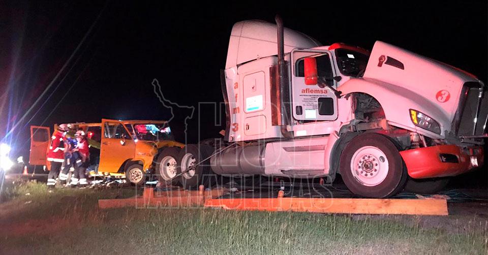 Ciudad Victoria, Tamaulipas. - Un accidente carretero registrado esta madrugada, dejó como saldo hasta ahora, tres personas muertas entre ellas un menor de edad y cinco más con lesiones graves, en el kilómetro 77 de la carretera Zaragoza-Victoria. El accidente sobrevino cuando el conductor de una camioneta tipo Van chocó contra un tráiler estacionado.