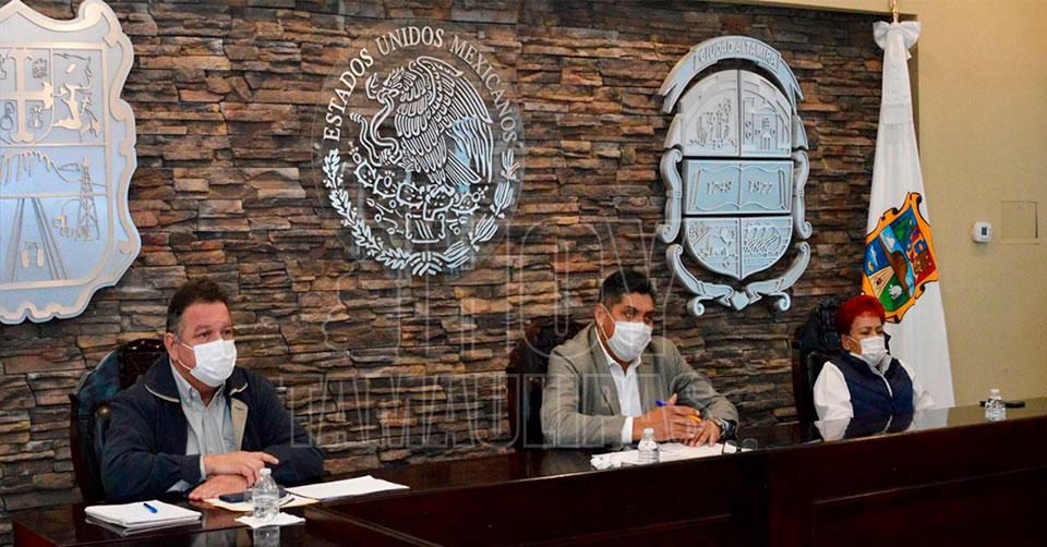 La junta de trabajo se efectuó de manera virtual en la sala de cabildo, acordándose mantener las acciones preventivas emitidas por la Secretaría de Salud en Tamaulipas como lo son: uso de cubre-bocas, lavado frecuente de manos, conservar la sana distancia, pero sobre todo, quedarse en casa y evitar las reuniones sociales.