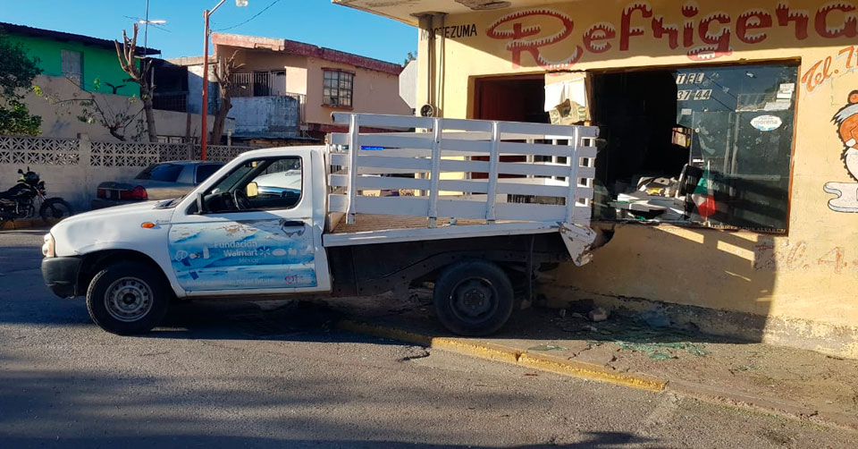 Tras el impacto, la camioneta del hombre de la tercera edad se proyectó hacia la fachada de un negocio de refrigeración y le causó daños materiales.