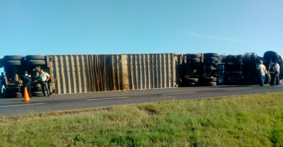 Presuntamente una dormitada al volante y el exceso de velocidad, provocó que el chofer perdiera el control al volante y terminara volcado, obstruyendo un carril a la circulación.