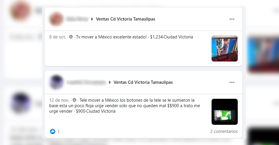 Pero los grupos de la capital de Tamaulipas no son los únicos lugares donde se venden estas pantallas, pues con tan solo escribir “TV Mover a México” en el buscador de Mercado Libre o en el Marcketplace de Facebook, se puede encontrar una gran cantidad de estas pantallas.