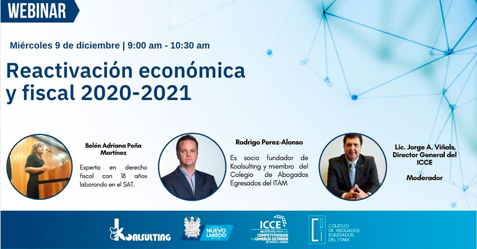 Nuevo Laredo, Tamaulipas. - Con el propósito de ofrecer a la ciudadanía una visión clara ante una situación difícil generada por la pandemia de Covid-19, el Instituto para la Competitividad y Comercio Exterior (ICCE), realizará la videoconferencia ‘Reactivación Económica y Fiscal 2020-2021’, este miércoles 9 de diciembre, a las 9 de la mañana.