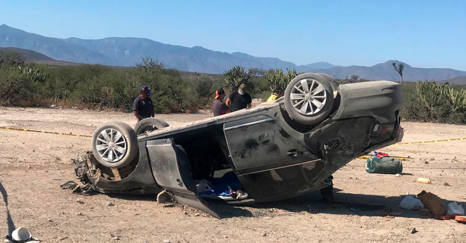 Tula, Tamaulipas. - Una mujer perdió la vida esta tarde luego de volcar en el vehículo en el que viajaba, esto en el kilómetro 47 de la carretera federal 101 tramo carretero Tula-Jaumave.