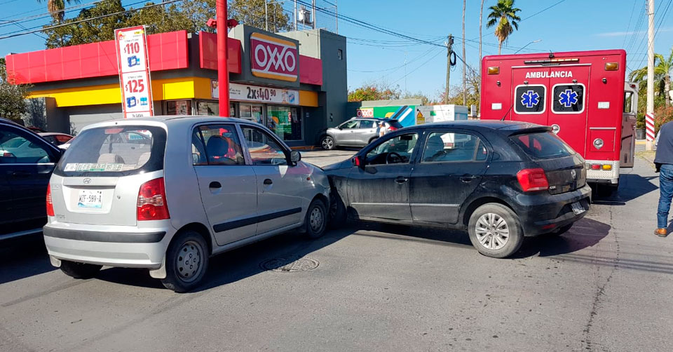 Al sentirse confiada, la mujer arrancó, cruzó el carril derecho de la Avenida Santos Degollado, pero en el izquierdo la chocó un Hyundai Atos.