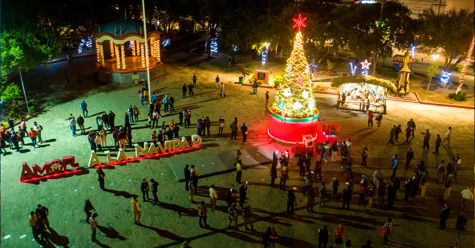 Matamoros, Tamaulipas. - Este jueves por la noche el presidente Municipal y la presidenta del Sistema DIF-Matamoros encendieron el monumental pino navideño instalado en la Plaza Principal, el cual simboliza la llegada de una de las épocas más bellas del año, pero también representa la esperanza de que el 2021 será un mejor año.