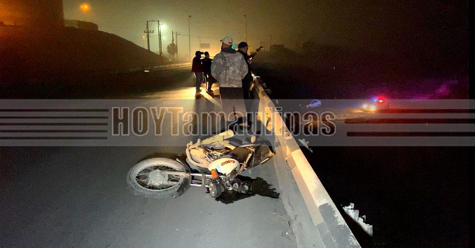 Ciudad Victoria, Tamaulipas. – Trágica muerte encontró un motociclista esta madrugada luego de chocar contra la valla de protección de un puente y luego caer, desde una altura de diez metros aproximadamente al lecho de río San Marcos.