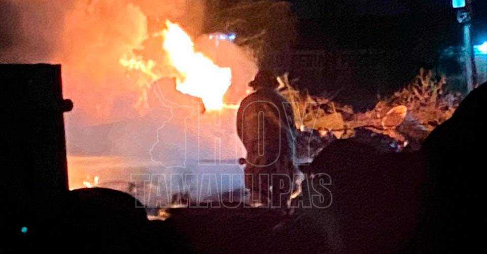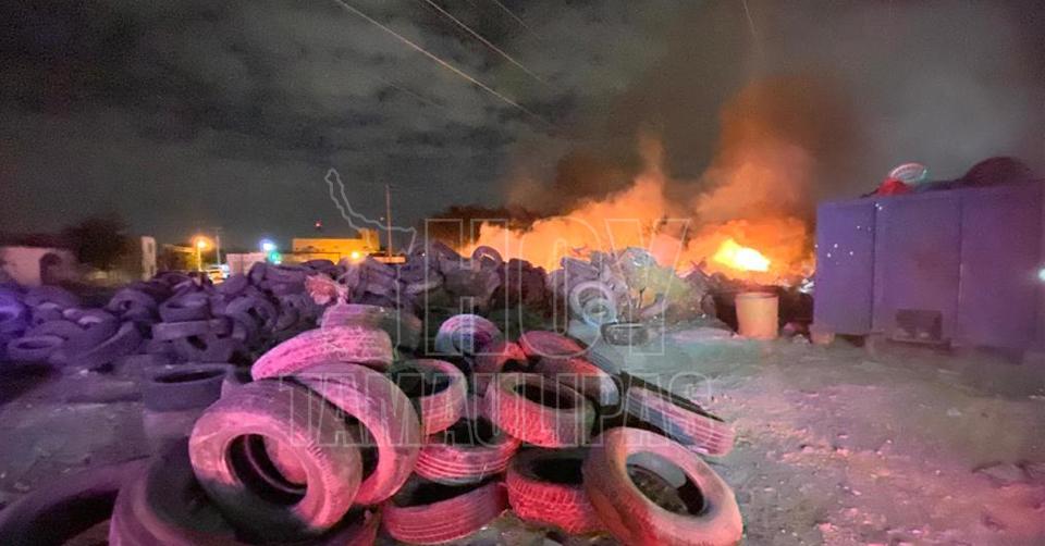 Reynosa, Tamaulipas. - Está noche se registró otro incendio en Reynosa al prenderse un tiradero de llantas en la colonia El Olmo.