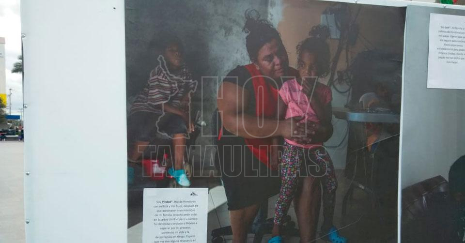 Reynosa, Tamaulipas. - La organización Médicos Sin Fronteras (MSF) instaló en la plaza principal de Reynosa una exposición fotográfica, en donde se pueden ver testimonios de personas provenientes de distintos países y la situación por la que atravesaron para llegar a cruzar a los Estados Unidos, esto para celebrar el Día Internacional del Migrante.