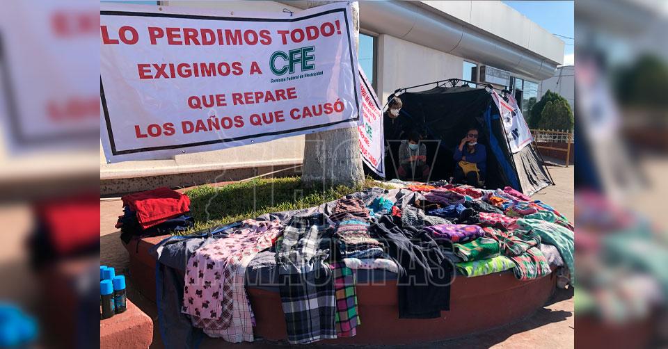 Matamoros, Tamaulipas. - A escasos dos días de que cumplan dos semanas de manifestación a las afueras de la Comisión Federal de Electricidad (CFE) en Matamoros, las señoras Alejandrina y Laura recibieron la noticia de que sería hasta el mes de enero del 2021 cuando la aseguradora pudiera darles una respuesta a la reparación de daños que están exigiendo.