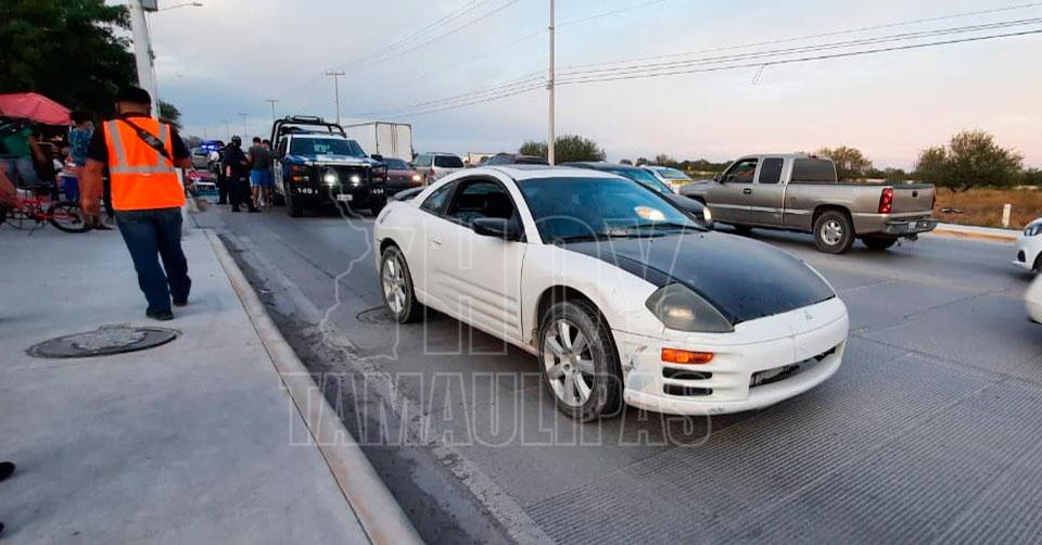 Reynosa, Tamaulipas. – Tres mujeres resultaron lesionadas esta tarde luego de ser embestidas por un conductor que huía después de provocar un accidente vial, en la calle Sexta y avenida De los Pinos, en el acceso a la colonia Villa Florida sector A.