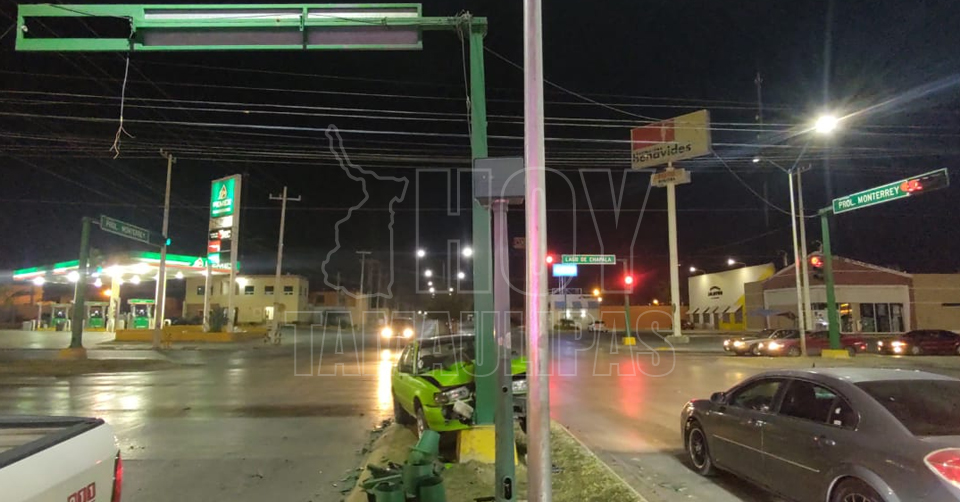 Nuevo Laredo, Tamaulipas. ─ Después de chocar contra la base de un semáforo, una persona abandonó el automóvil que conducía para no pagar los daños que causó al municipio de Nuevo Laredo.
