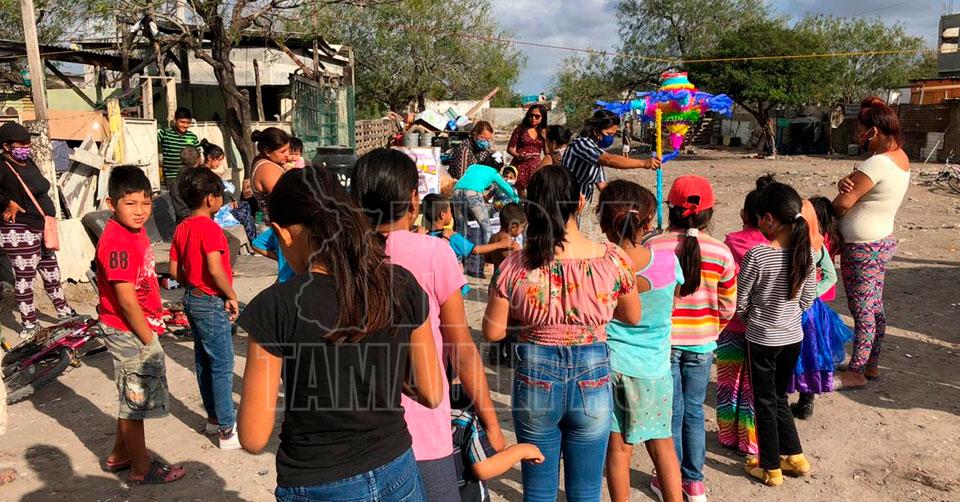 Matamoros, Tamaulipas. - Regalos, dulces pastel y piñatas les llevaron a los niños del ranchito La Escondida que no tuvieron Navidad.