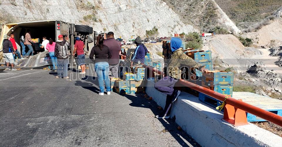 En Ciudad Victoria: Vuelca tráiler con tomate y aparecen los rapiñeros