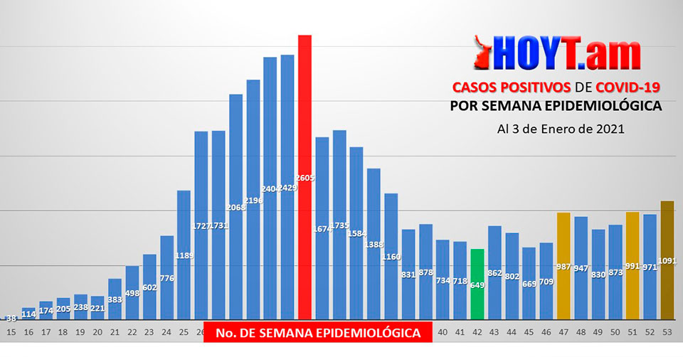 Ciudad Victoria, Tamaulipas. - Un total de 1,091 tamaulipecos dieron positivo a Covid-19 durante los últimos siete días dentro de la Semana Epidemiológica 53 que comprendió del 27 de diciembre al 2 de enero, lo que representó un incremento del 12.35 por ciento en comparación a la anterior, esto de acuerdo a datos oficiales de la Secretaría de Salud estatal.