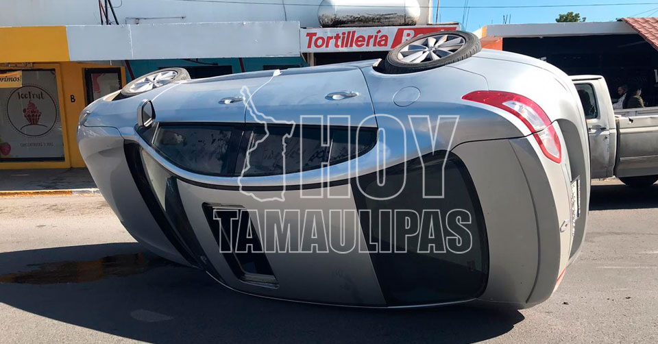 Ciudad Victoria, Tamaulipas. – Un conductor resultó ileso esta tarde luego de volcar el vehículo en el que viajaba, en el crucero de la calle 16 y Patrocinio Huerta de la Colonia Magisterial.