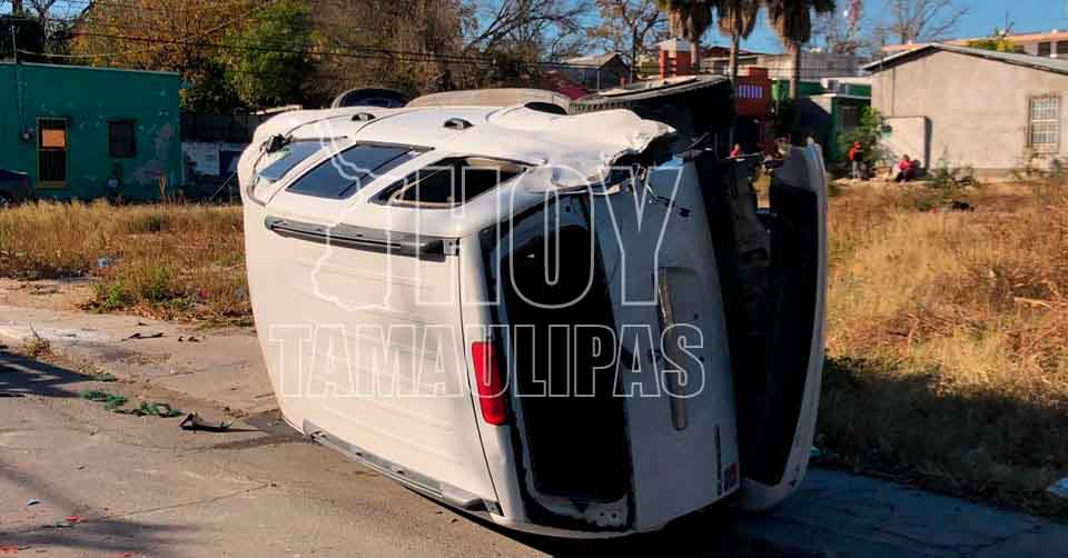 Chocan camioneta y la hacen volcar en Nuevo Laredo