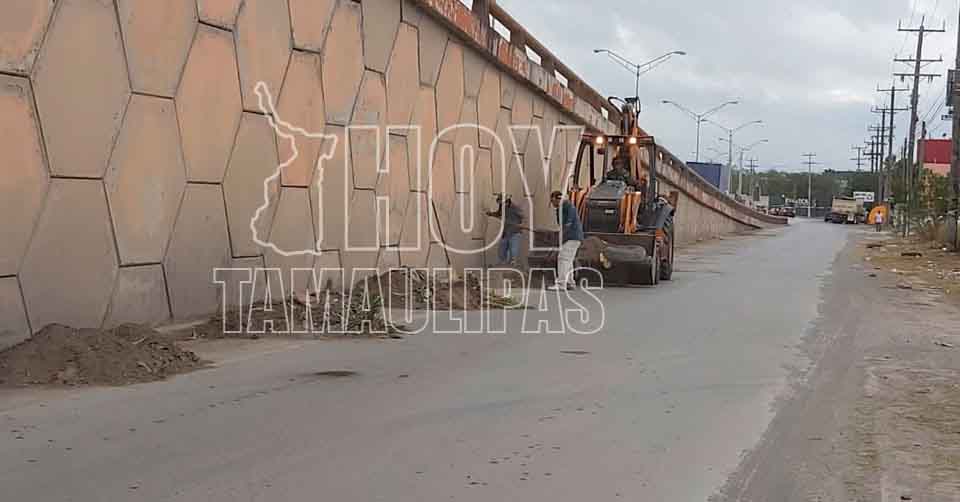 Los empleados de Espacios Públicos trabajaron esta mañana en la limpieza de los accesos laterales del puente Rigo Tovar en Matamoros
