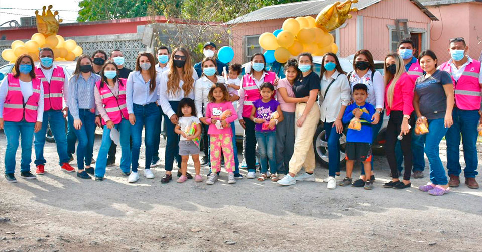 Matamoros, Tamaulipas. - En el marco de la celebración del Día de Los Reyes Magos, la diputada Ivett Bermea Vázquez y la escuela de Inglés Easy Learning, llevaron una caravana de dulces, regalos y roscas a las familias de la colonia Campestre Del Río 1.