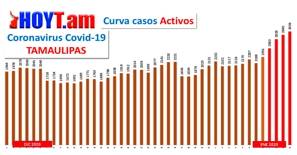 Ciudad Victoria, Tamaulipas. - La curva de casos activos de Covid-19 rebasó anoche los 3 mil casos, lo que representó un incremento del 3.09 por ciento en 24 horas, esto de acuerdo a las cifras de la Secretaría de Salud en Tamaulipas.