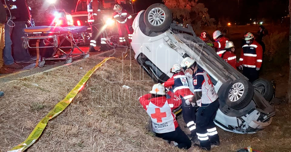 Ciudad Victoria, Tamaulipas. - Un conductor resultó gravemente lesionado luego de quedar prensado tras impactar su automóvil contra otra unidad y volcar, durante la noche en el libramiento Naciones Unidas de Ciudad Victoria.