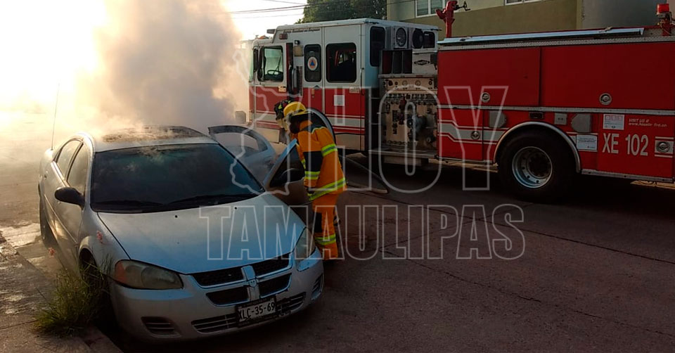 Madero Tamaulipas. - A causa de un corto circuito un vehículo se envolvió en llamas sufriendo fuertes daños materiales, por lo que el Cuerpo de Bomberos tuvo que asistir para controlar las llamas.