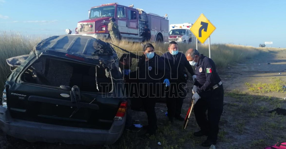 Obreros amanecidos vuelcan en la carretera a la playa de Matamoros